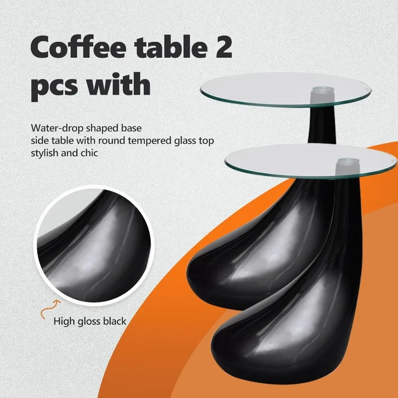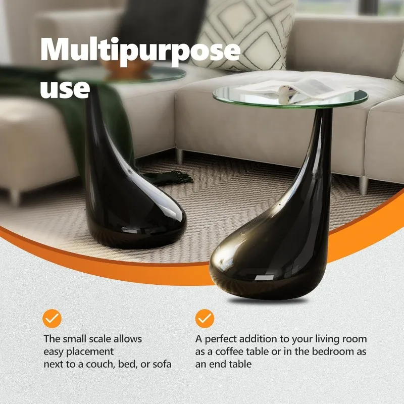- Unique Design: Showcases a unique water-drop shape base in a high-gloss white finish for a chic look. Designed with a round tempered safety glass top for elegance and safety.
